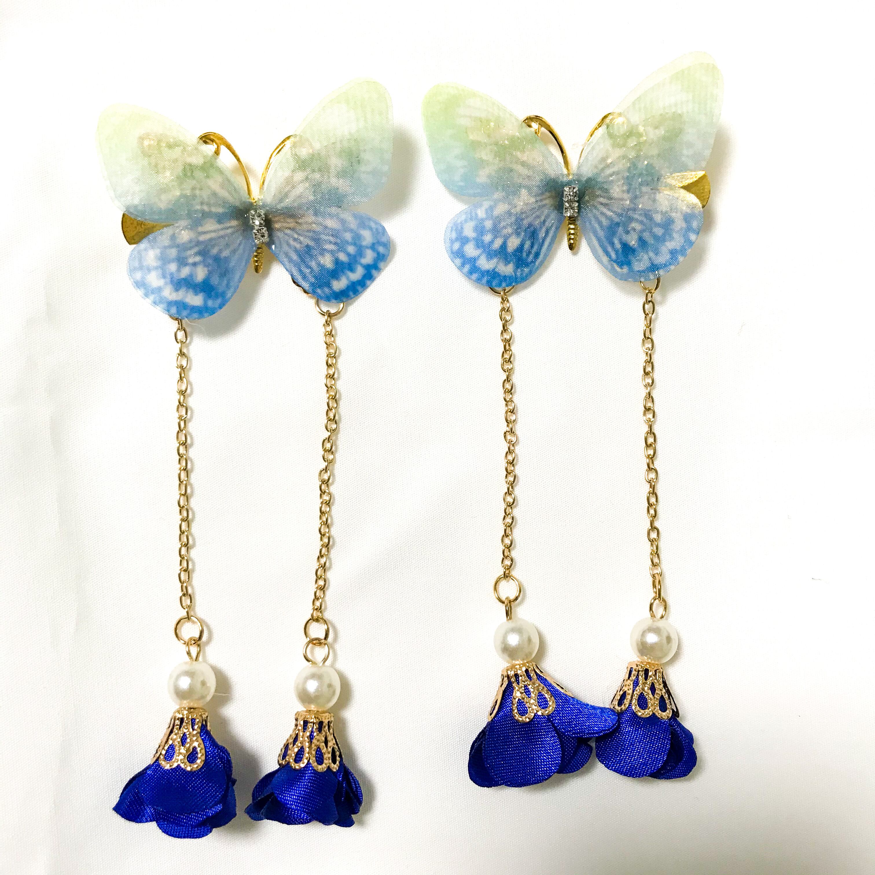 チャイナ髪飾り「蝶-01 青」新
